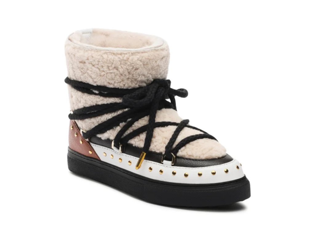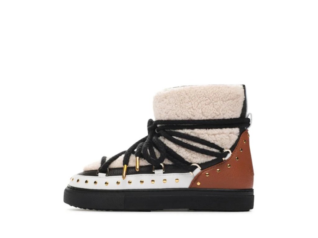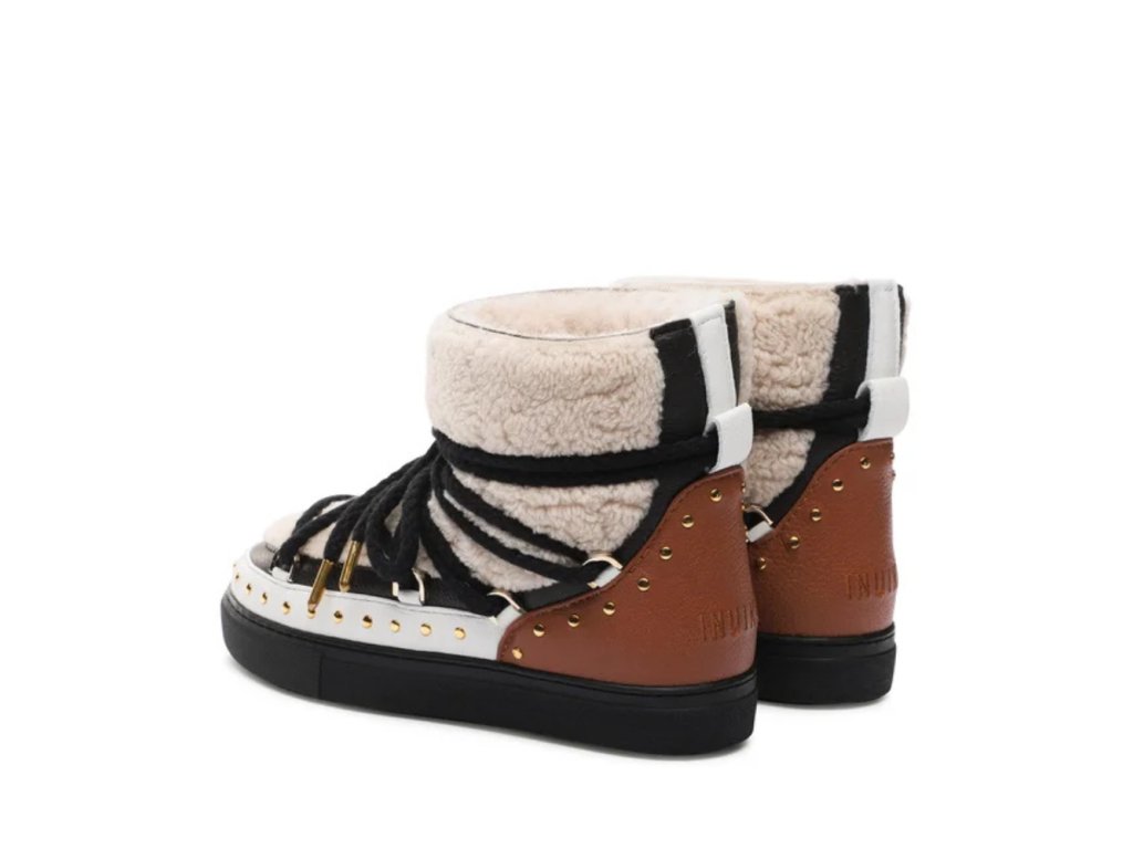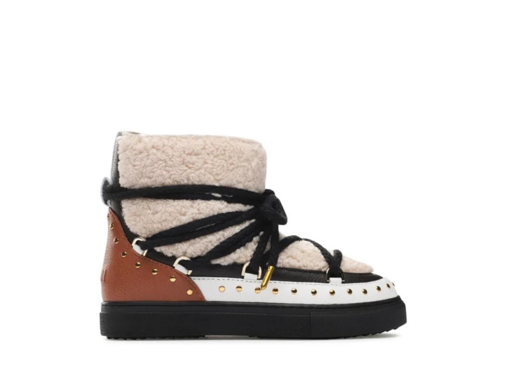 INUIKII dámské válenky kožené kombinované s ozdobnými cvočky | CURLY ROCK CREAM