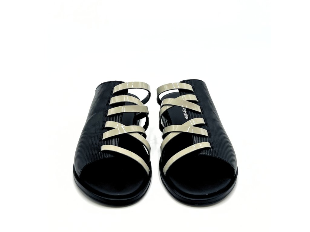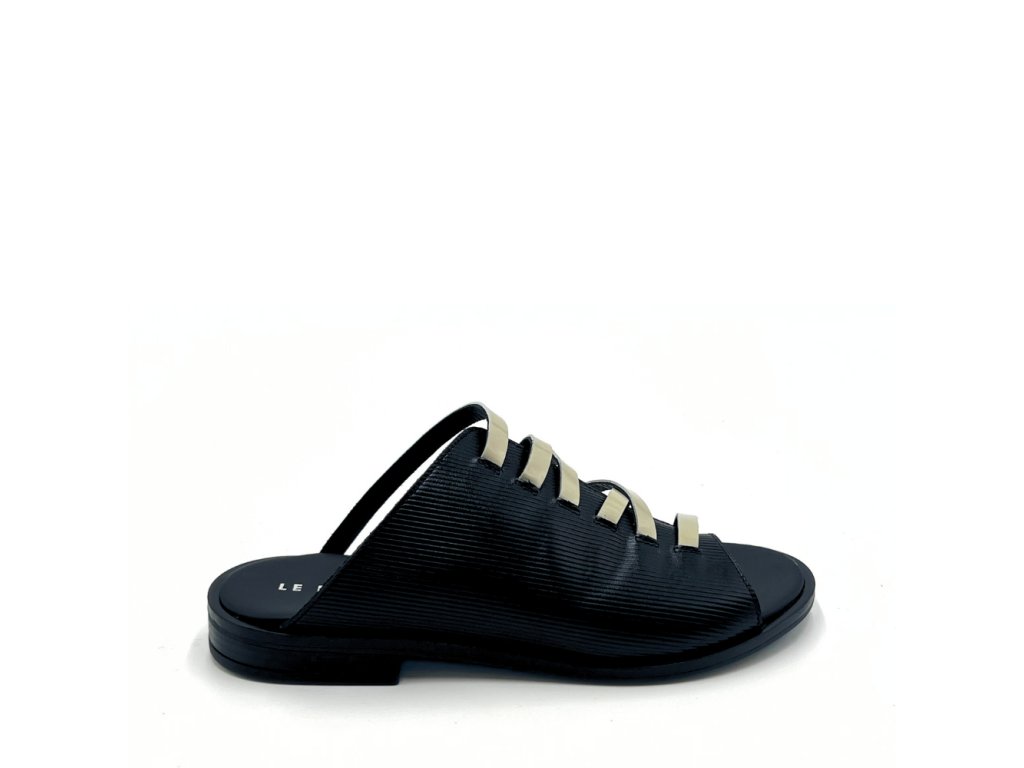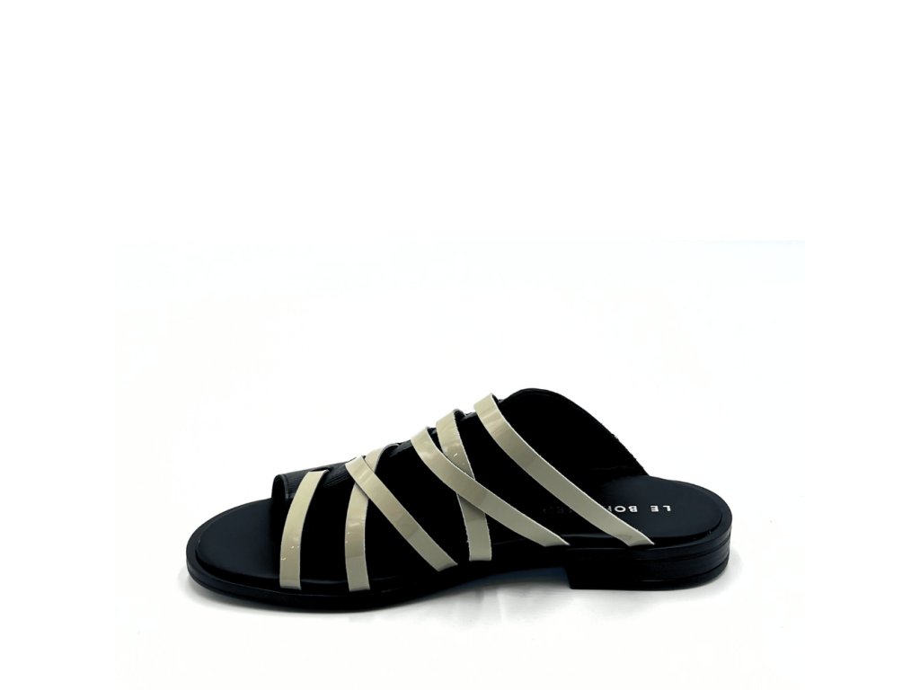 Dámské sandály Le Bohémien SC03-6C BARDOLINO jsou dokonalým příkladem spojení prémiových italských kůžía jedinečného módního designu z Milána. Tento model přináší moderní a odvážný vzhled díky kontrastní kombinaci černého koženého základu a béžových pásků, které zdobí nárt a vytvářejí originální geometrický efekt.