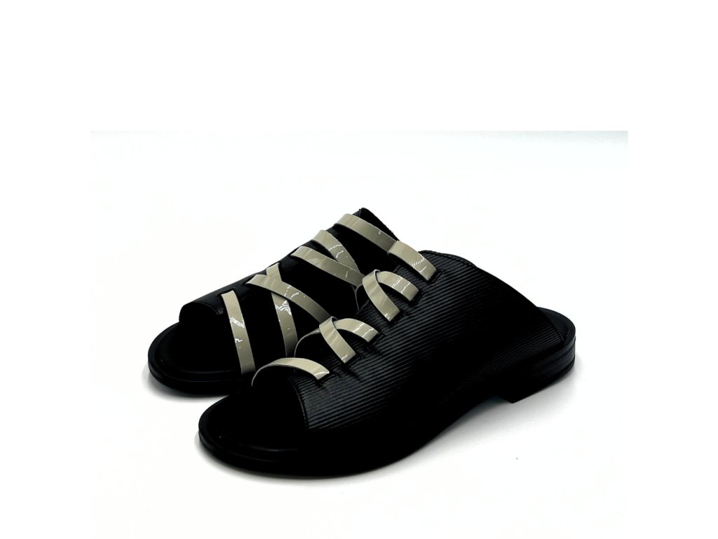 LE BOHÉMIEN dámské žabky s šedými pásky černé kožené | SC03-6C BARDOLINO