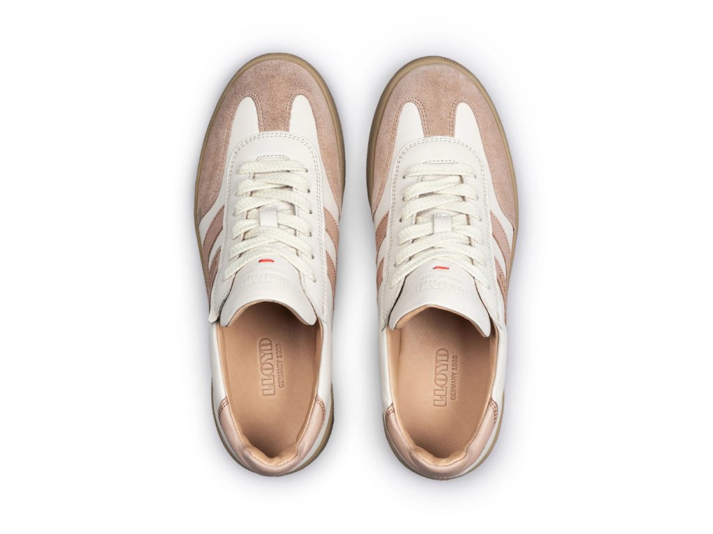 Tyto dámské tenisky v sobě spojují nadčasový design s kvalitním zpracováním, které je pro značku LLOYD typické. Svršek tvoří jemná kombinace hladké a broušené kůže v decentních béžovo-růžových tónech, díky čemuž boty působí stylově a univerzálně.