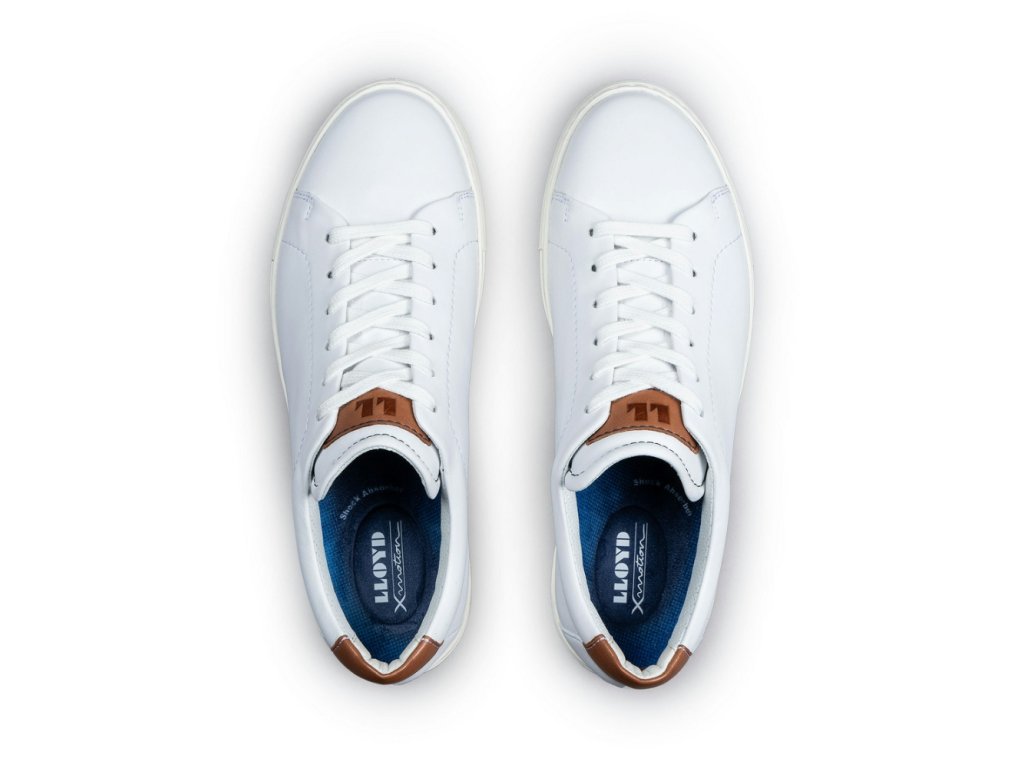 LLOYD pánské tenisky bílé z hladké kůže s hnědým detailem | 15-028-11