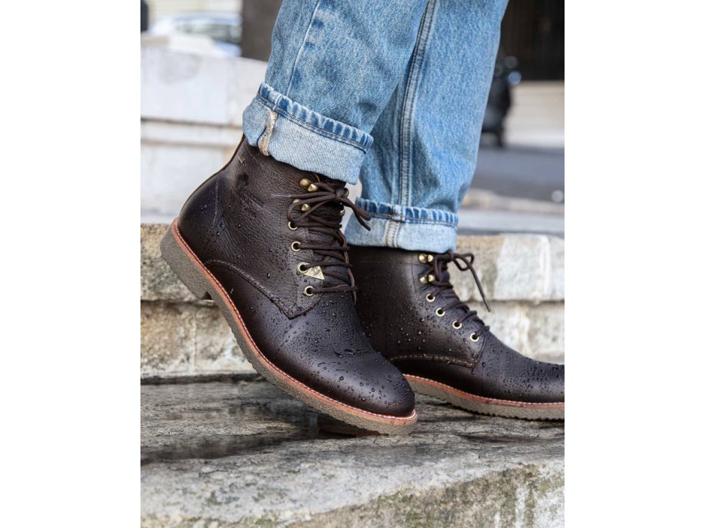 Vyrobené z prémiové hnědé kůže Napa Grass s voděodolnou úpravou WATERPROOF a membránou Gore-Tex®, která chrání před deštěm a zároveň umožňuje kůži dýchat.