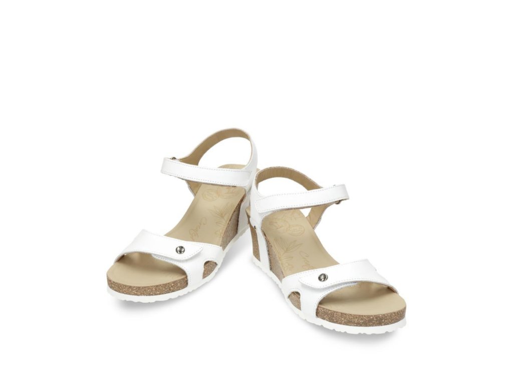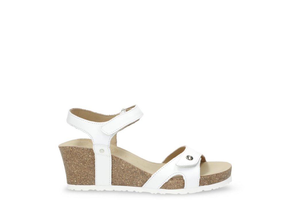 PANAMA JACK sandály na korkovém klínku bílé kožené | JULIA BASICS B17 NAPA BLANCO