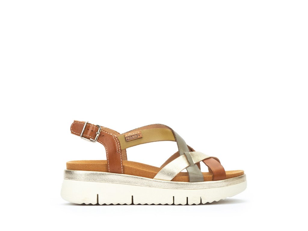 PIKOLINOS dámské sandály na platformě hnědo-zelené kožené | W4N-0650C1 BRANDY-CIT