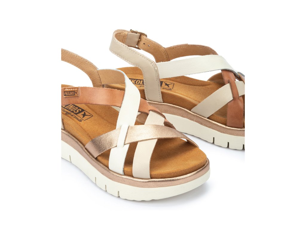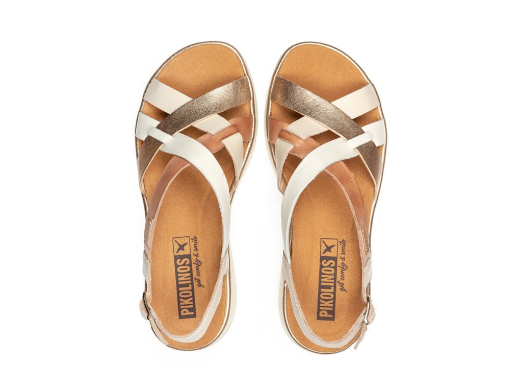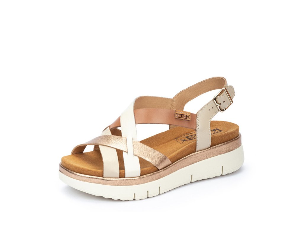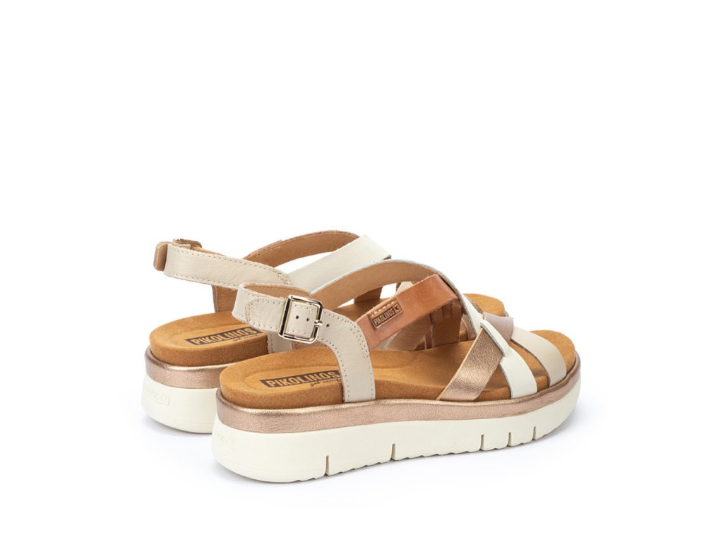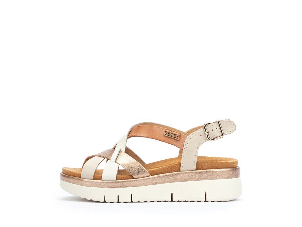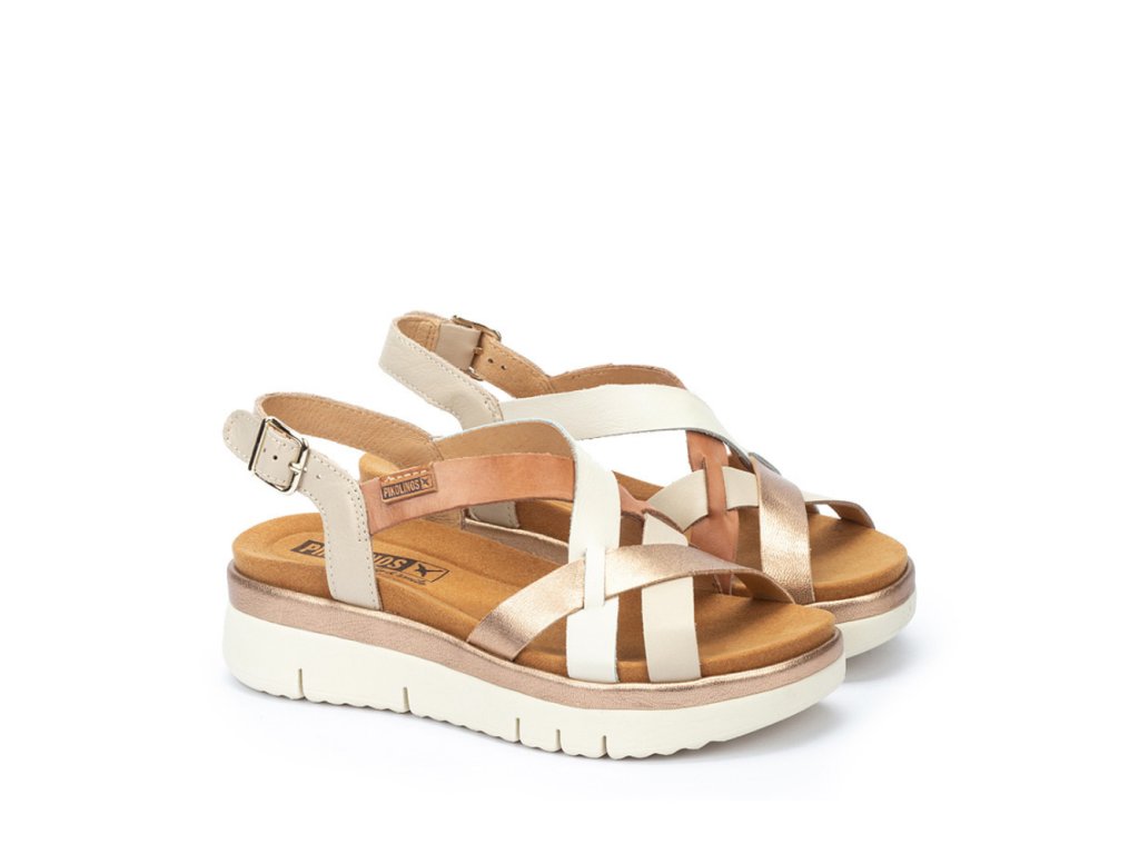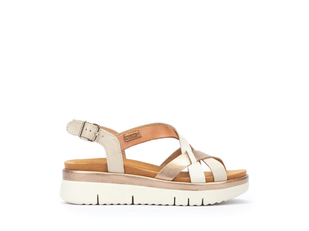 PIKOLINOS dámské sandály na platformě krémo-zlaté kožené | W4N-0650C1 MARFIL