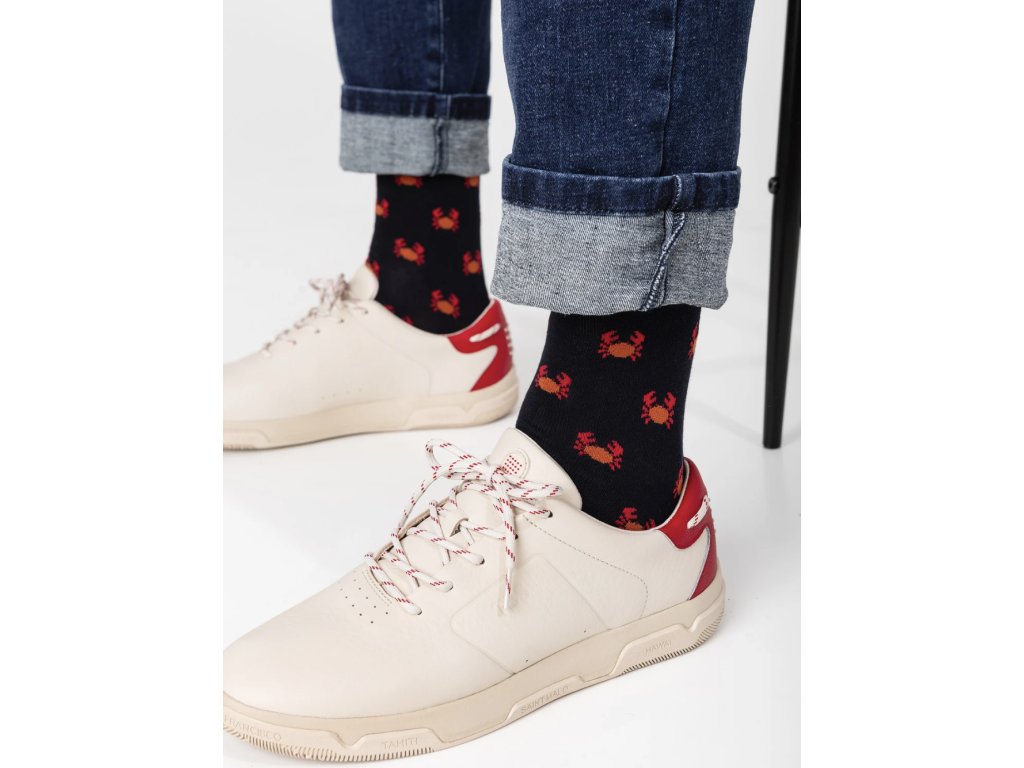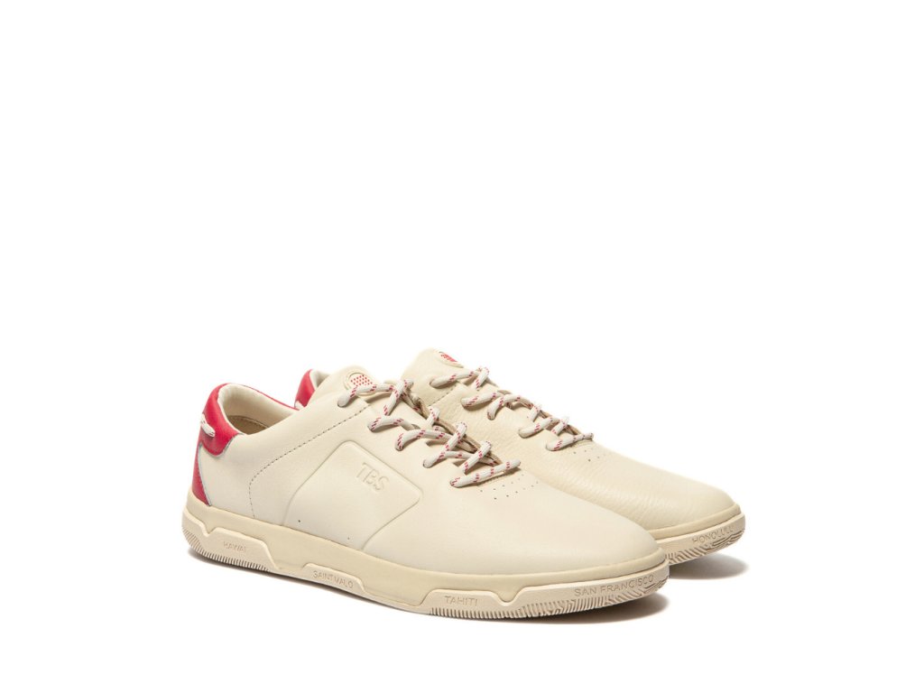 TBS pánské tenisky krémové s červeným detailem kožené | K8C53 GEDEONE
