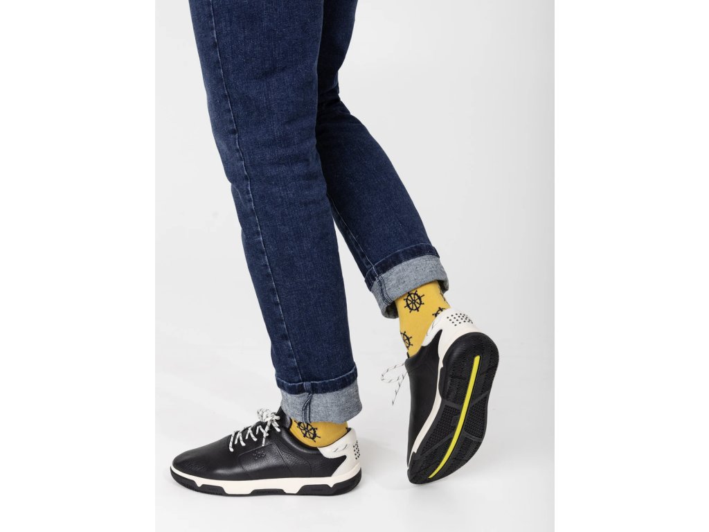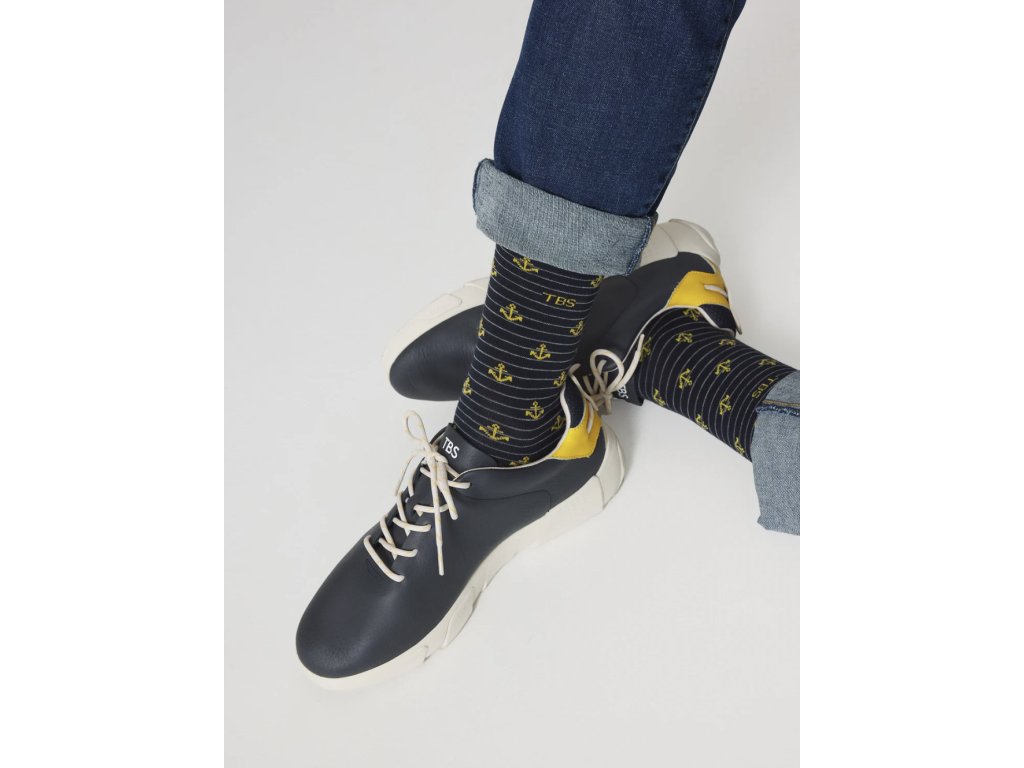 TBS pánské tenisky tmavě modré se žlutým detailem kožené | K8T82 JAZAIRY
