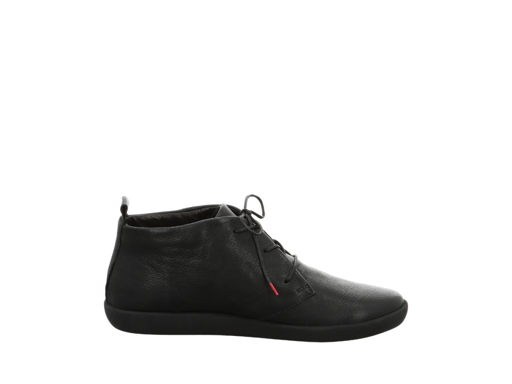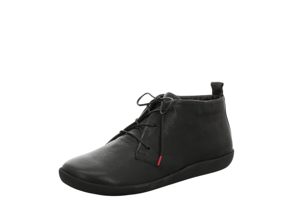Anatomicky tvarovaný střih perfektně obepíná nohu a vytváří přirozený pocit chůze naboso. Šněrování umožňuje přesné přizpůsobení chodidlu, zatímco měkká a flexibilní gumová podešev tlumí nárazy a podporuje přirozený pohyb chodidla při chůzi. Vyjímatelná kožená stélka přispívá k vysokému komfortu a lze ji snadno vyměnit za ortopedickou.