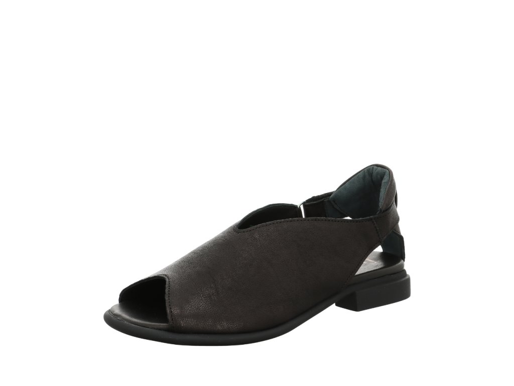 Elegantní sandály z hladké černé kůže nabízejí ideální kombinaci komfortu, stability a jednoduché elegance. Díky uzavřené patní části poskytují výbornou oporu při chůzi, zatímco měkce polstrovaná kožená stélka zajistí pohodlí i při delším nošení.