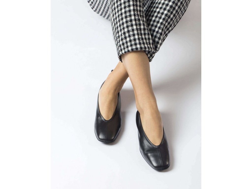 Dámské černé baleríny s kulatou špičkou. Tento neformální model s dvojitým prošíváním a poutkem pro snadné obutí je zcela vyroben ve Španělsku ručně a s láskou řemeslníky.