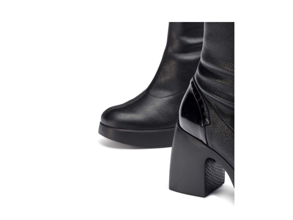 Boty jsou navrženy s vyšším střihem a pohodlným bočním zipem pro snadné obouvání. Robustní podpatek v kombinaci s platformou nejen opticky prodlužuje postavu, ale zároveň poskytuje stabilitu a komfort při chůzi. Moderní silueta s čistými liniemi z nich dělá univerzální volbu pro každodenní nošení i speciální příležitosti.