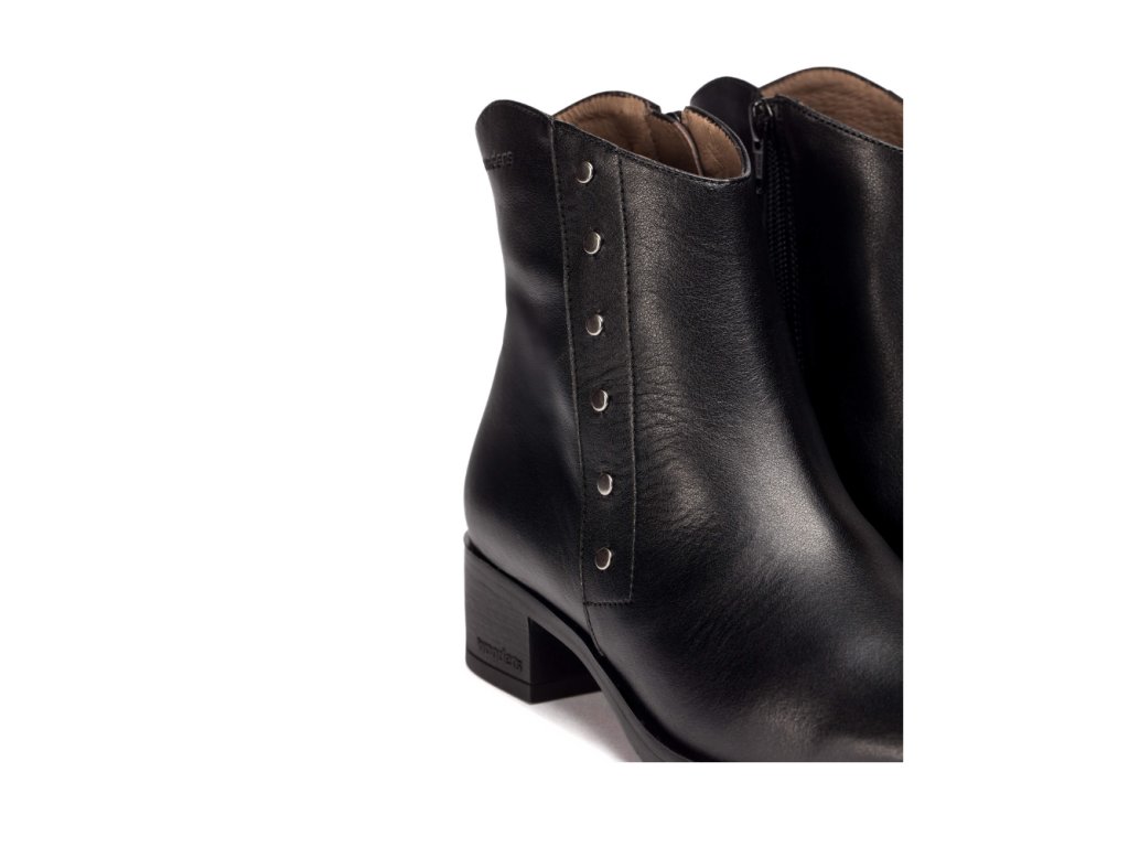 WONDERS dámské kotníkové boty na podpatku s ozdobnými cvoky kožené černé | D-1807 NEGRO