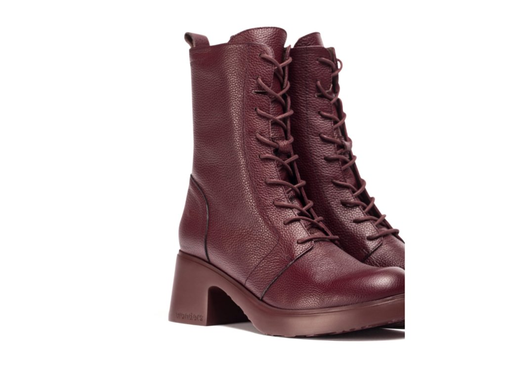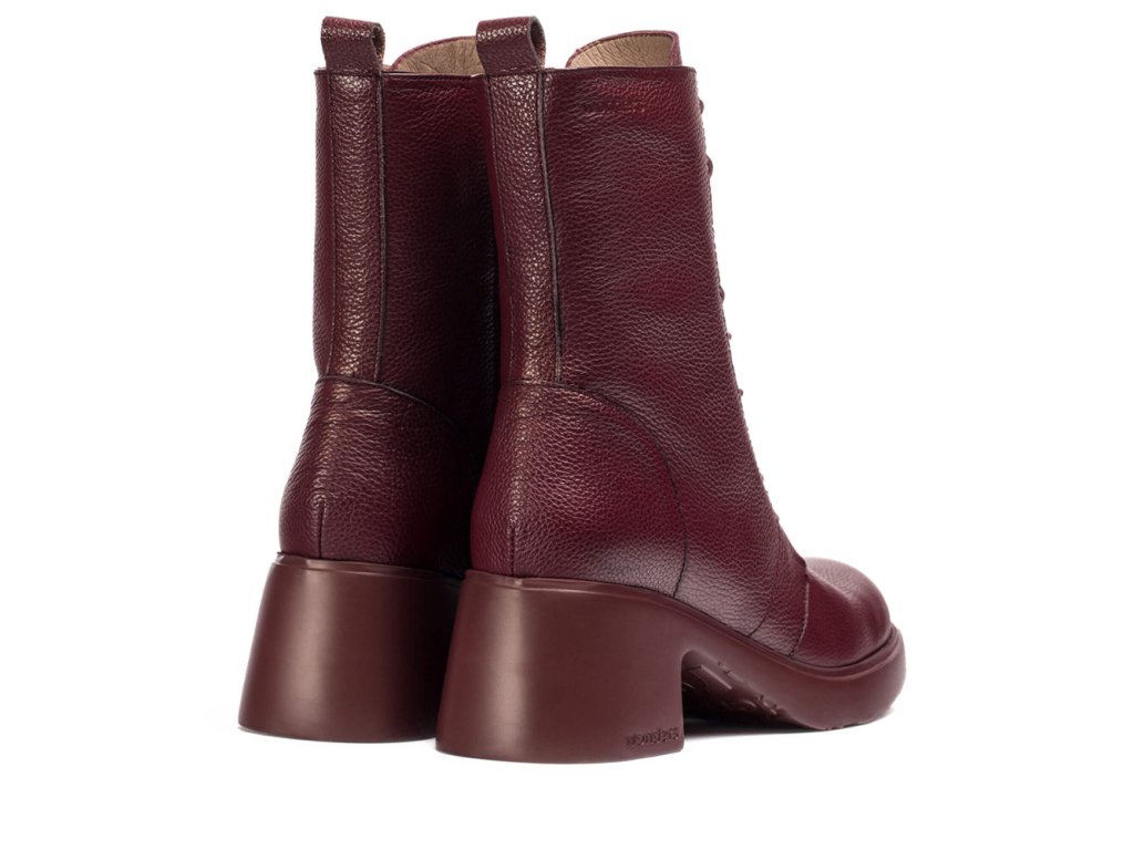 WONDERS dámské kotníkové boty na podpatku šněrovací kožené vínové | E-7124 VINO