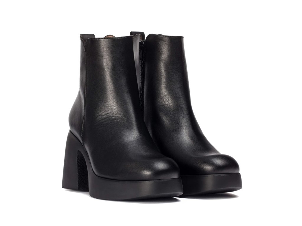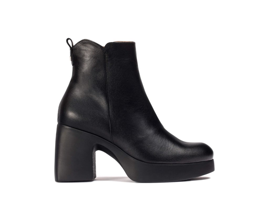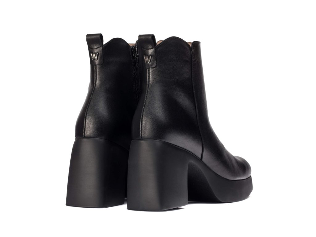 WONDERS dámské kotníkové boty na širokém podpatku kožené černé | H-4981 NEGRO