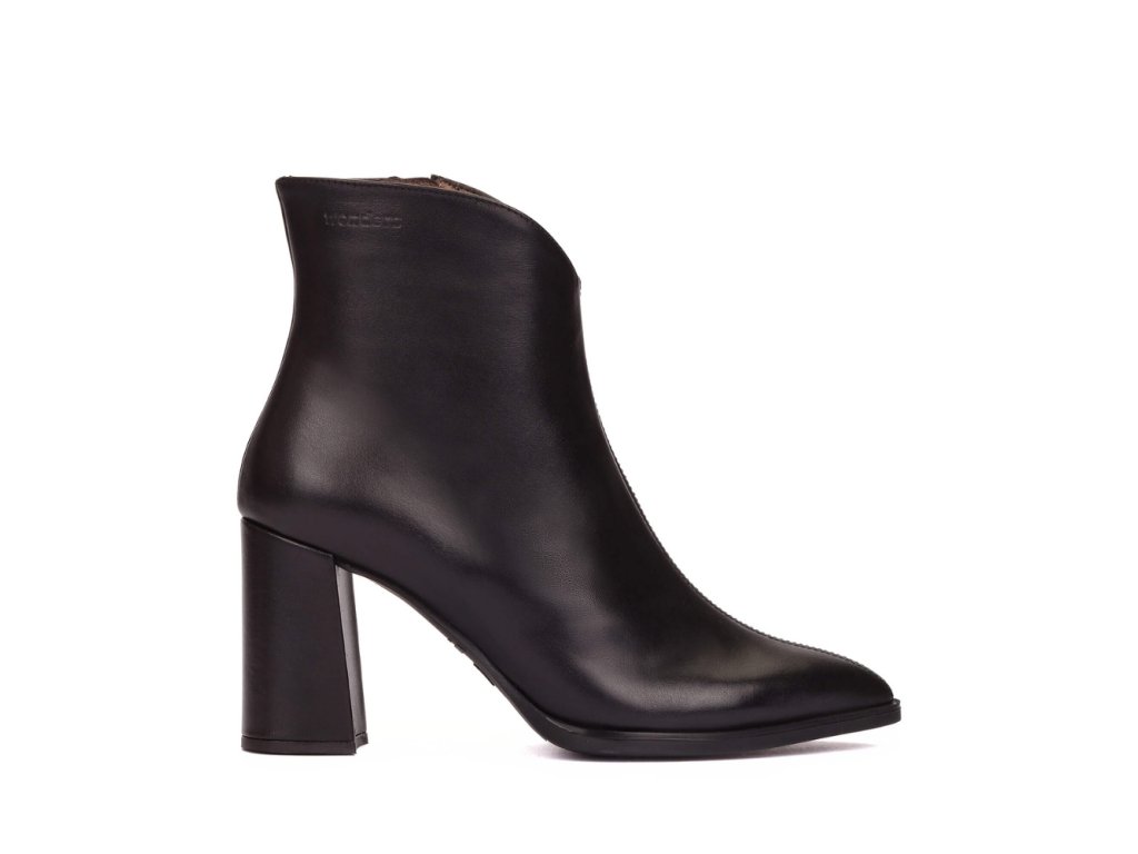 WONDERS dámské kotníkové boty na vysokém podpatku kožené černé | M-5430 NEGRO