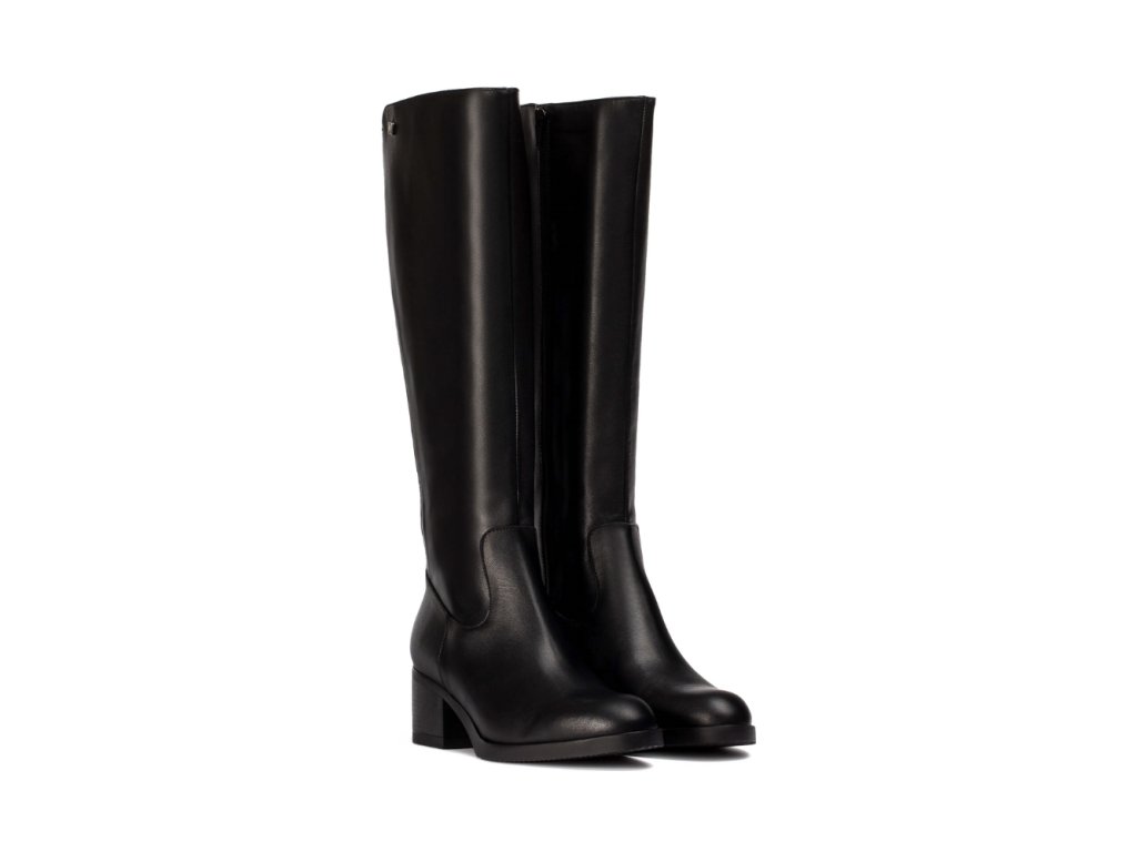 WONDERS dámské kozačky na podpatku kožené černé | G-6250 NEGRO