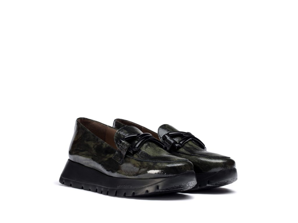 WONDERS dámské mokasíny lakované zelené kožené se sponou | A-2474 ALGA
