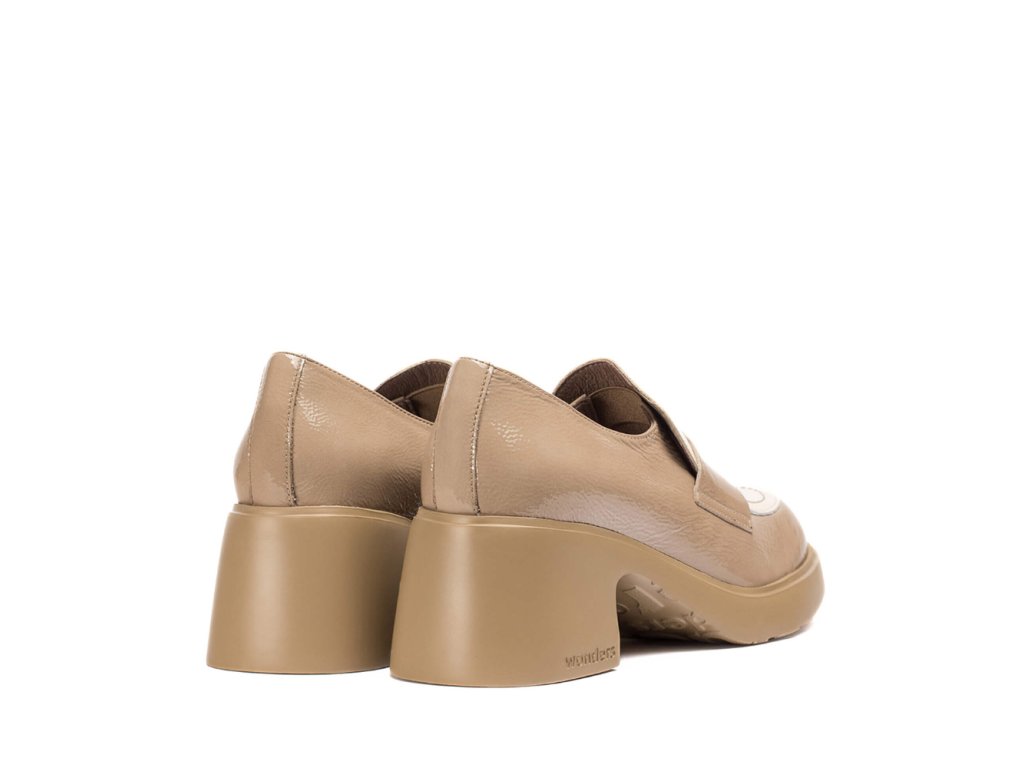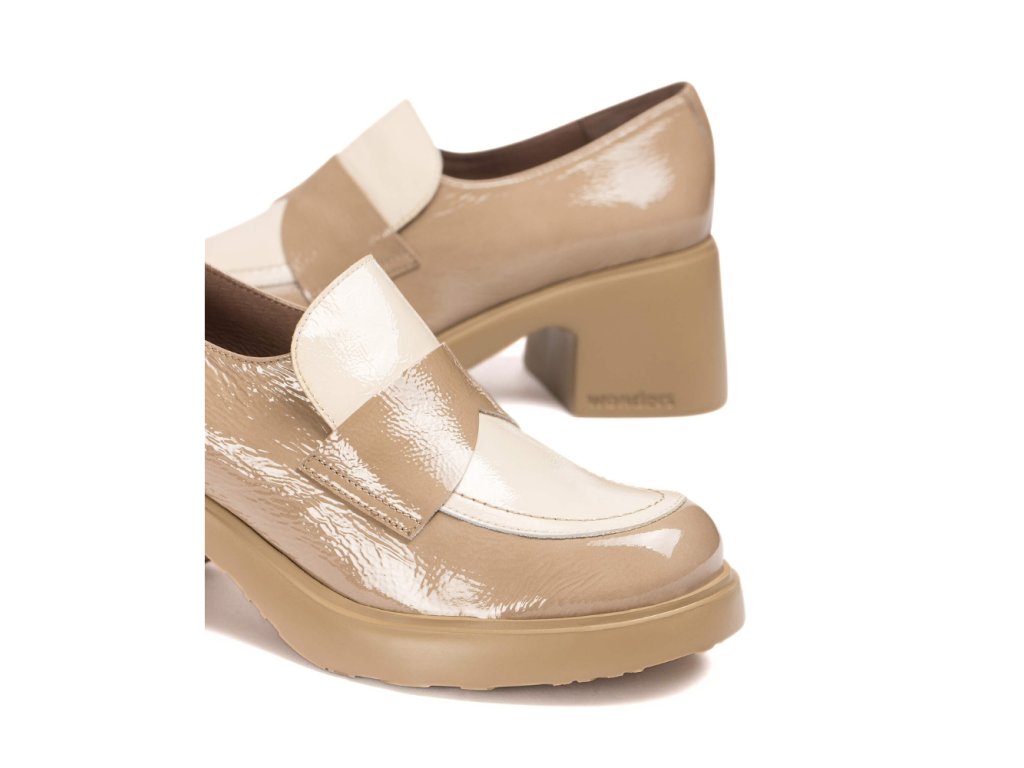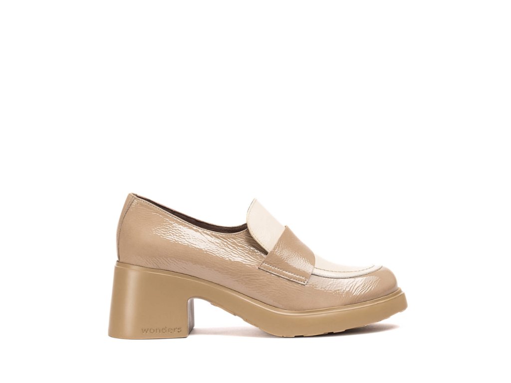 WONDERS dámské mokasíny na podpatku lakované krémové | E-7121 TAUPE/MILK