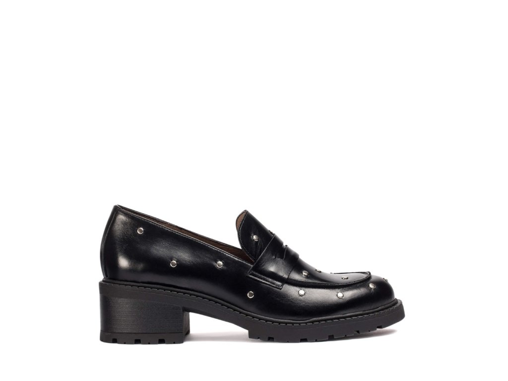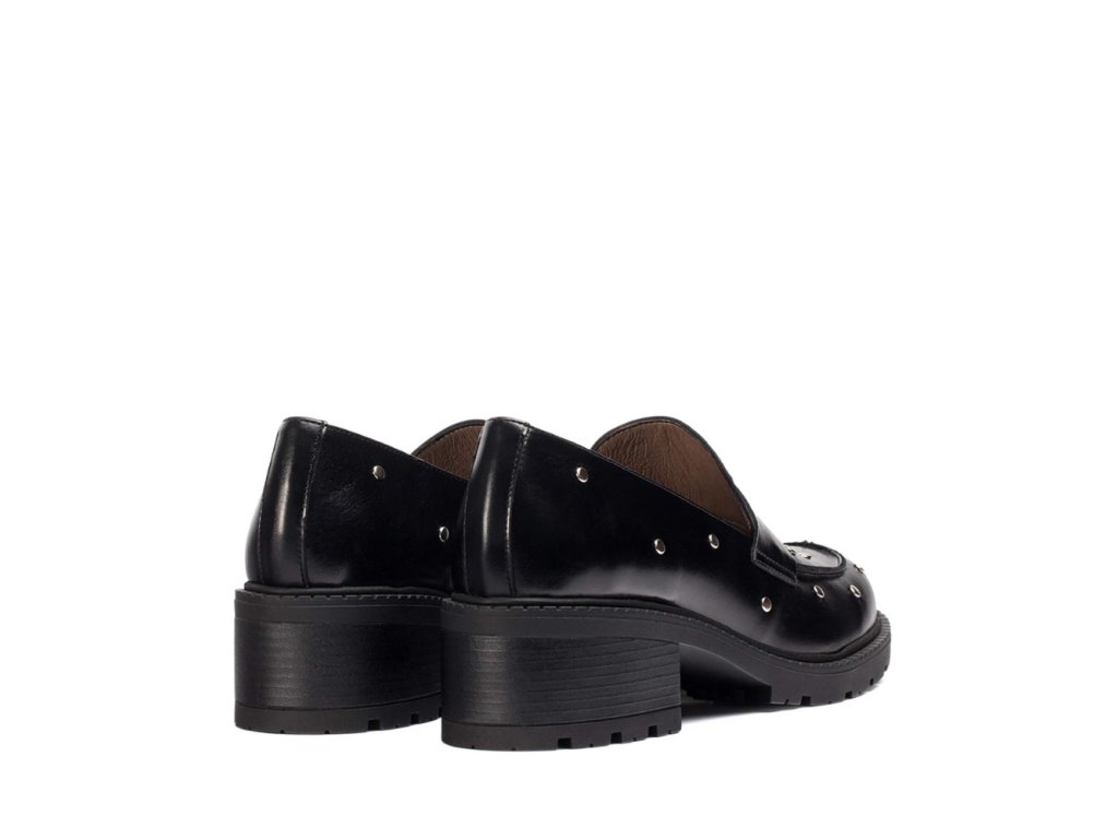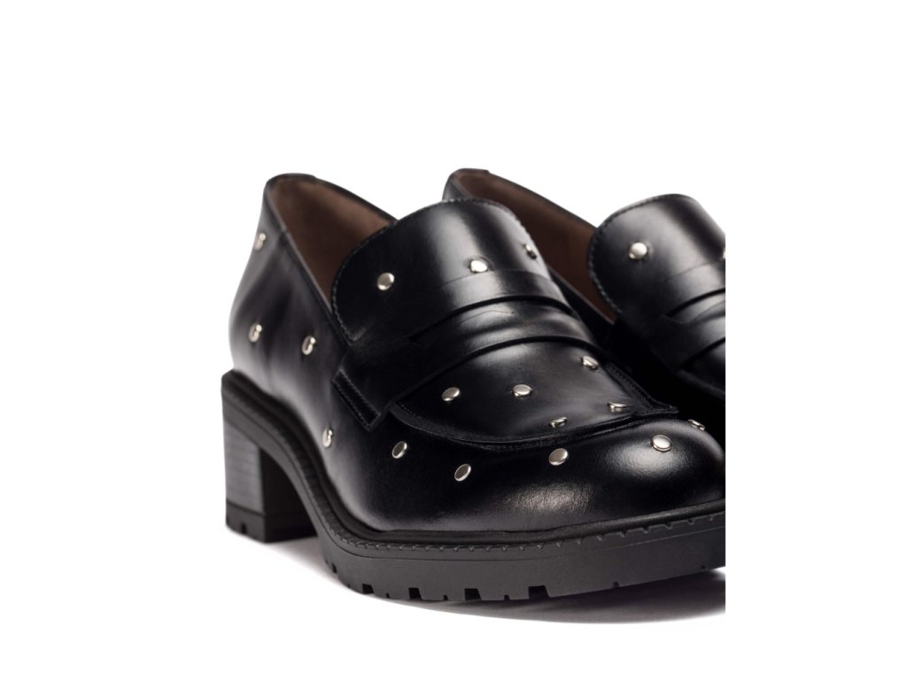 WONDERS dámské mokasíny s ozdobnými cvoky kožené černé | D-1429 NEGRO