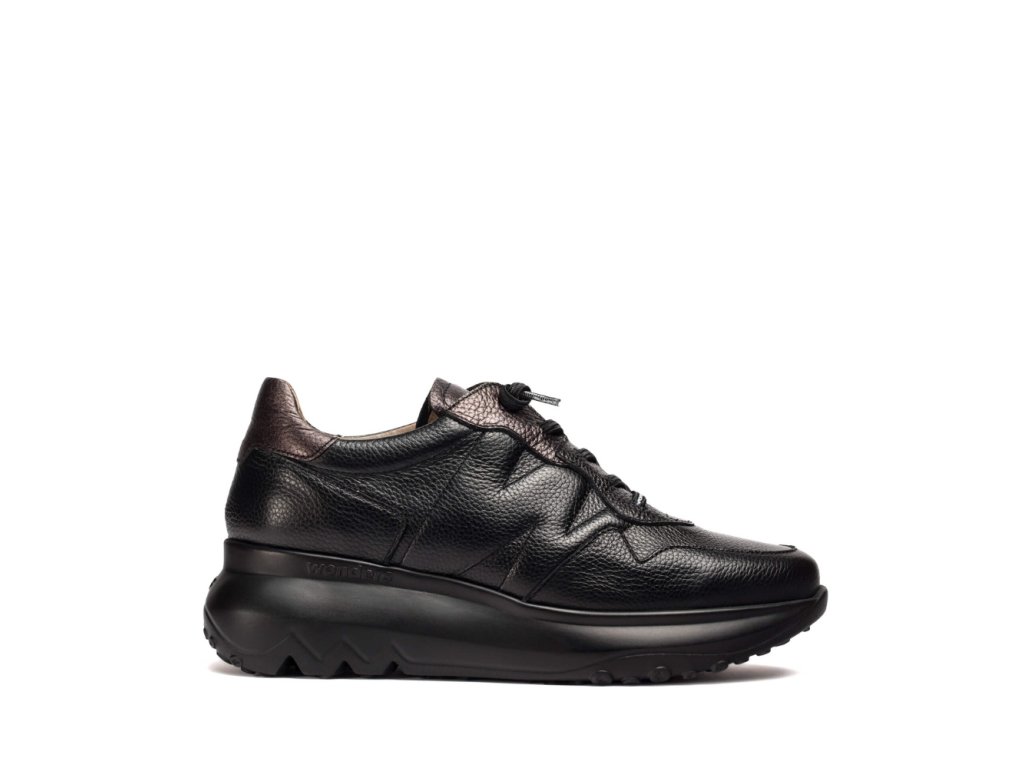 WONDERS dámské tenisky na platformě kožené černé | A-4010 NEGRO