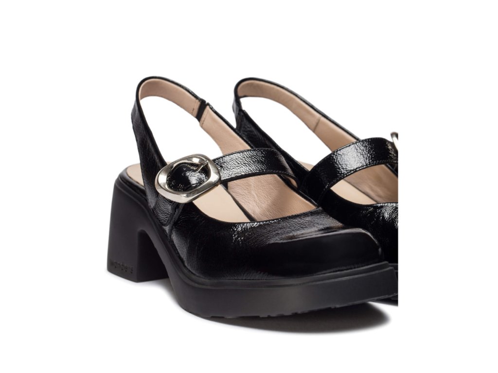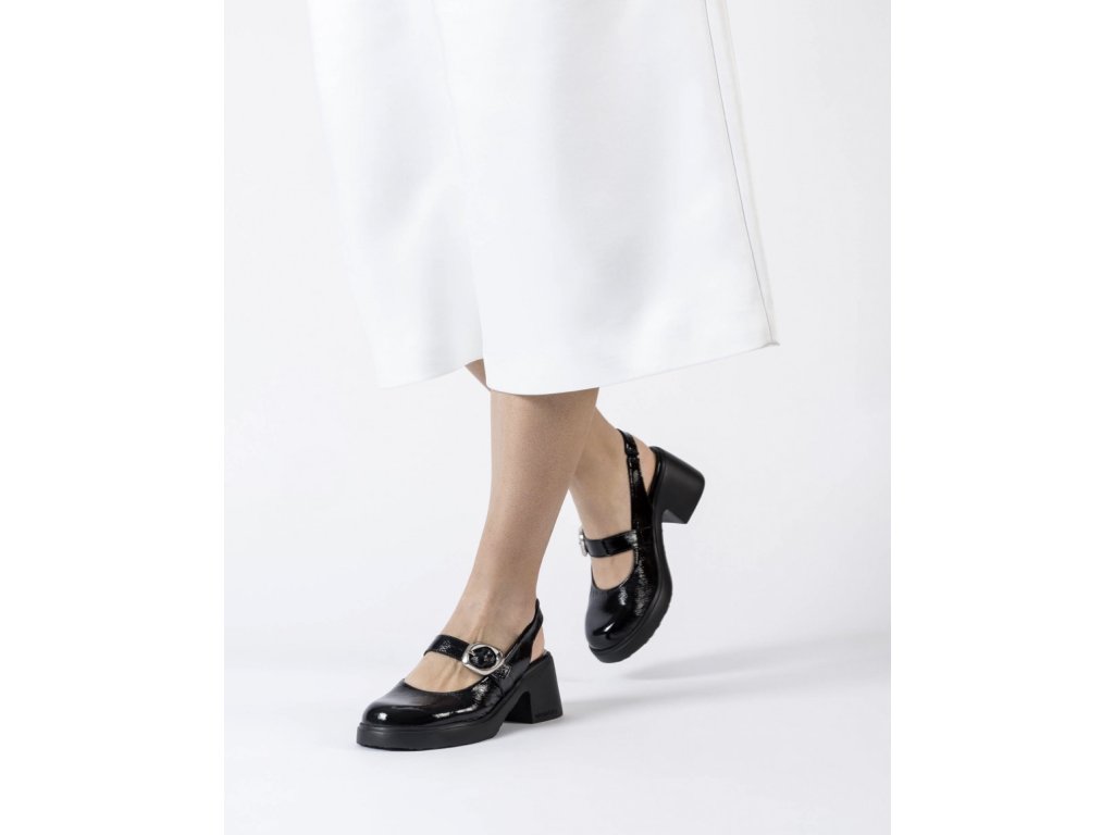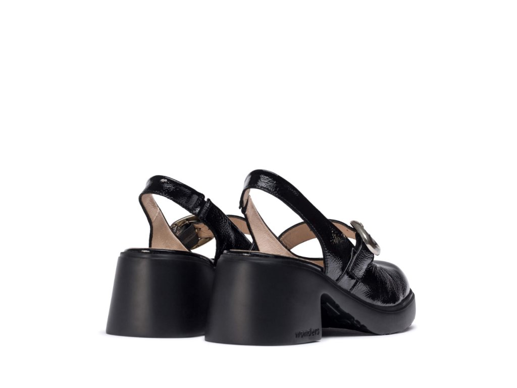 WONDERS lodičky s volnou patou na platformě černé lakované kožené | E-7111 NEGRO