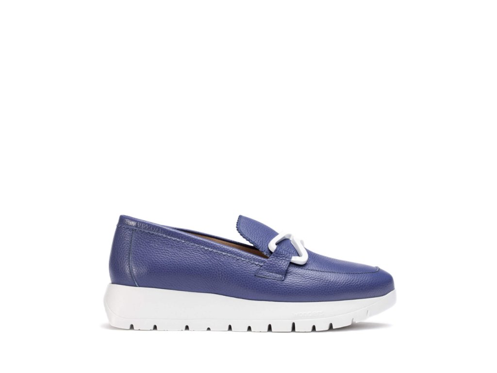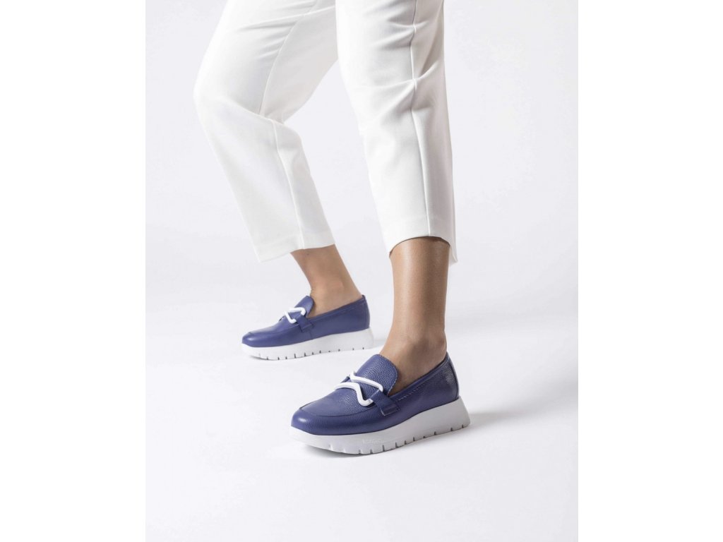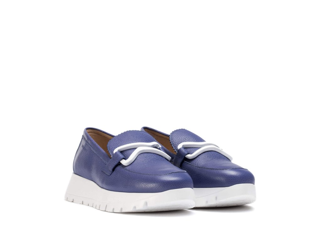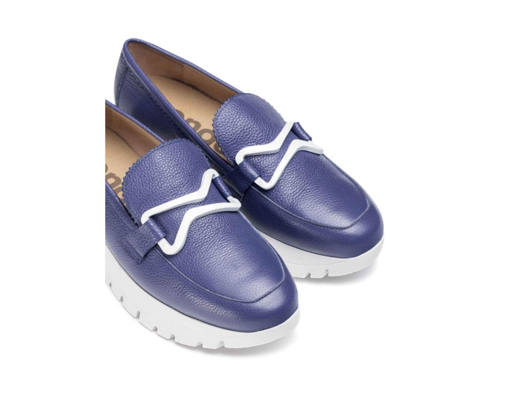 WONDERS mokasíny modré s bílou přezkou | A-2480 DUSK
