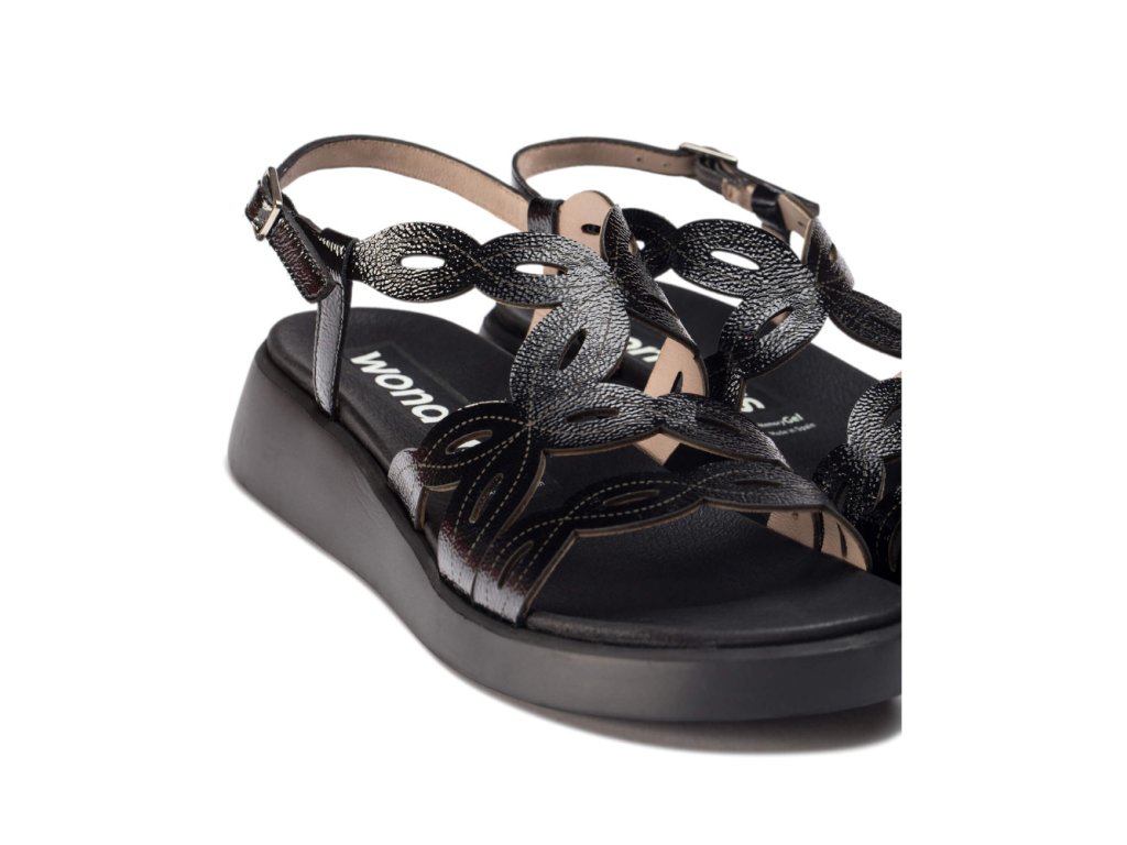 WONDERS sandály černé lakované kožené | C-6542 NEGRO