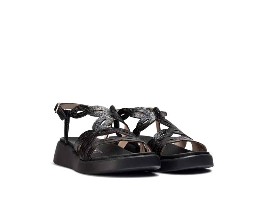 Ploché sandály DARYA jsou vyrobené z černé lakované kůže. Tento elegantní model zaujme oválnými, propletenými pásky s tónovým prošitím. Nastavitelná kovová spona zajišťuje pohodlné uchycení. Technologie WondersFly™ přináší lehkost a flexibilitu, zatímco stélka MemoryGel poskytuje maximální pohodlí. Připravte se na jedinečný pocit #YesWeFly.