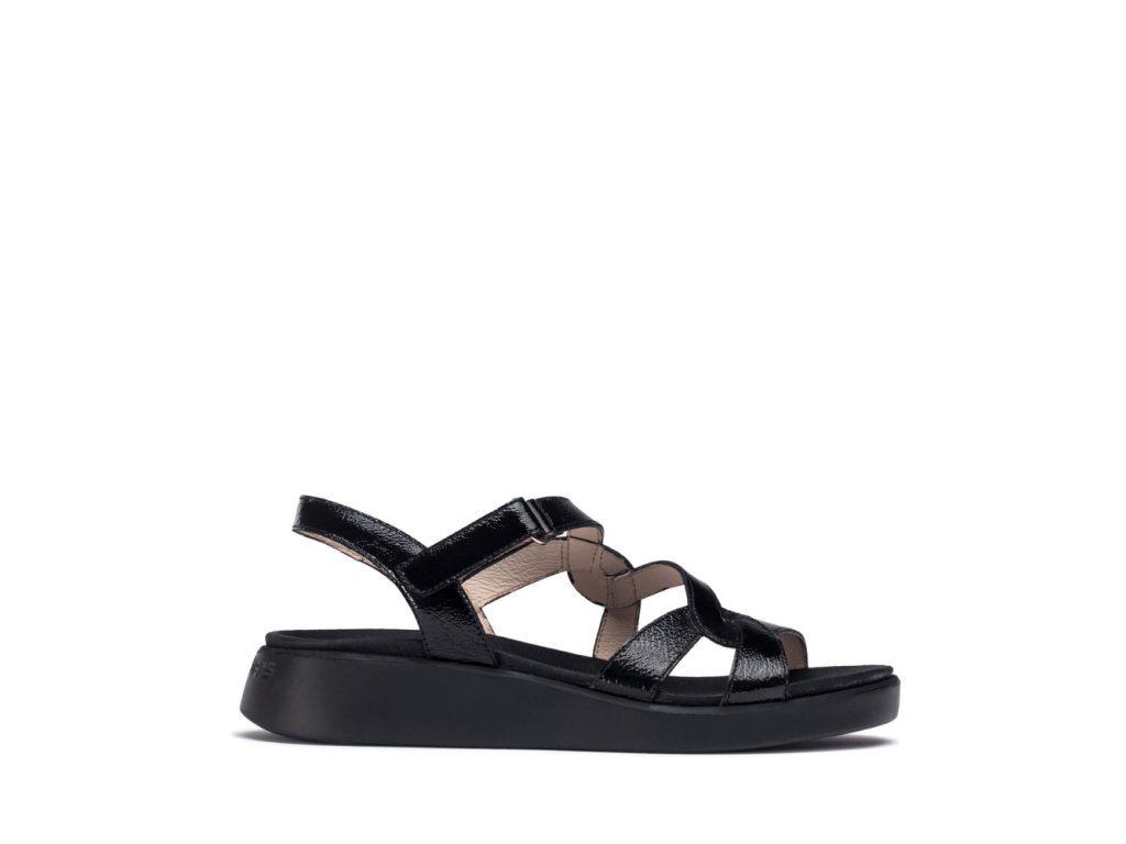 WONDERS sandály lakované kožené černé | C-6541 NEGRO