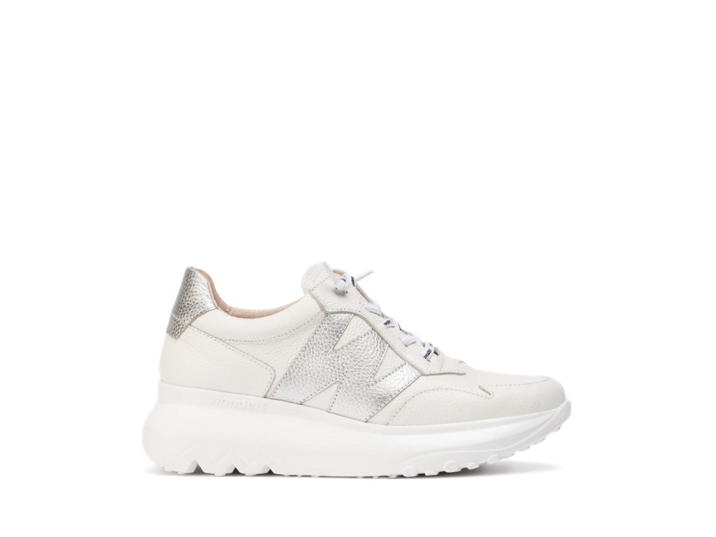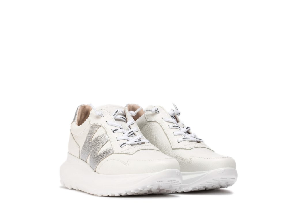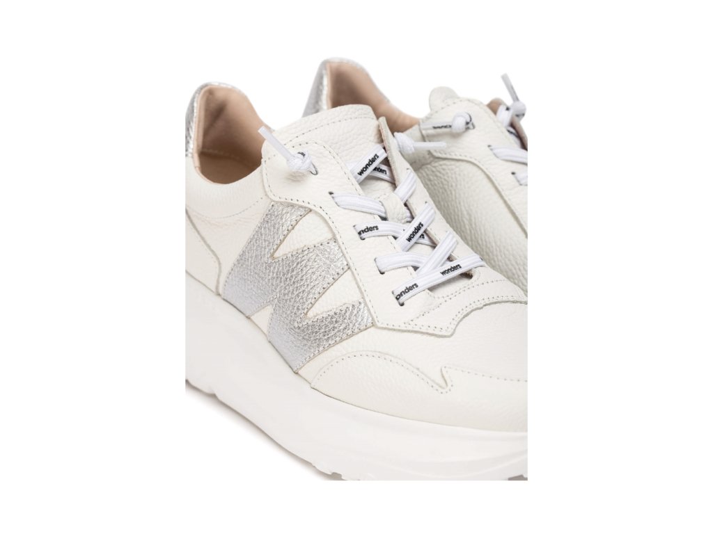 WONDERS tenisky se stříbrným detailem bílé kožené | A-4002 OFF PLATA